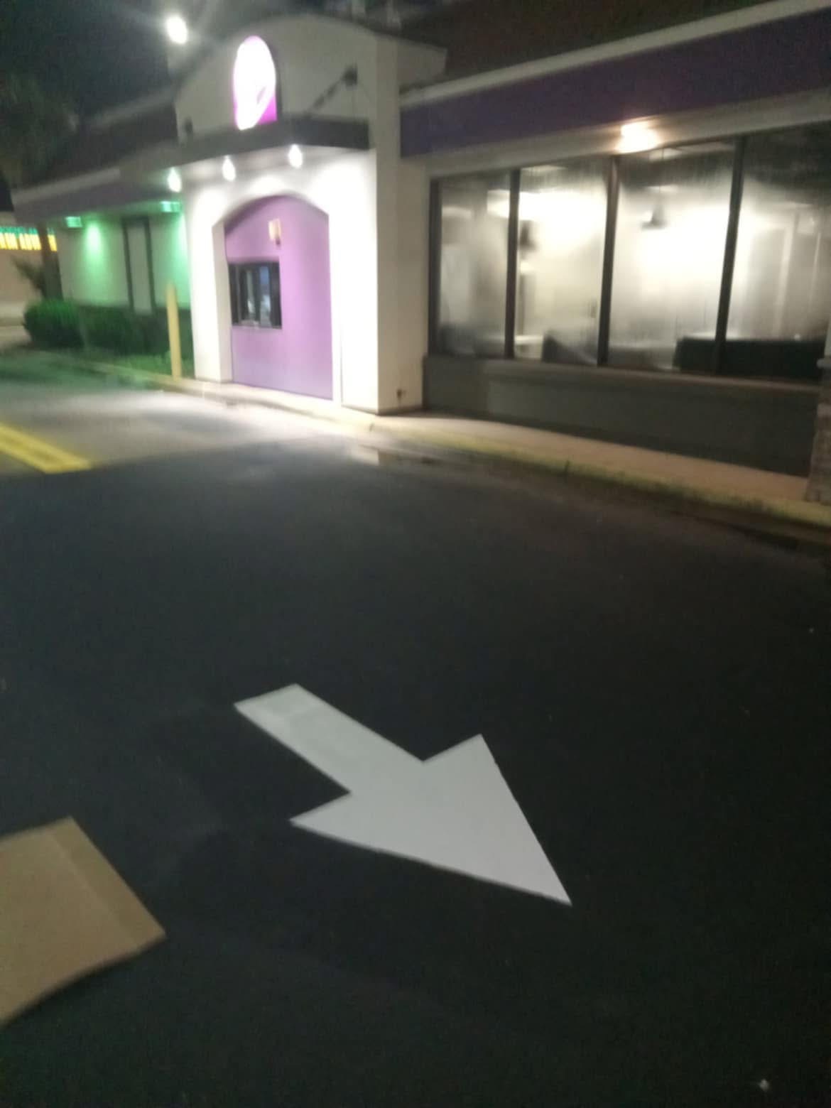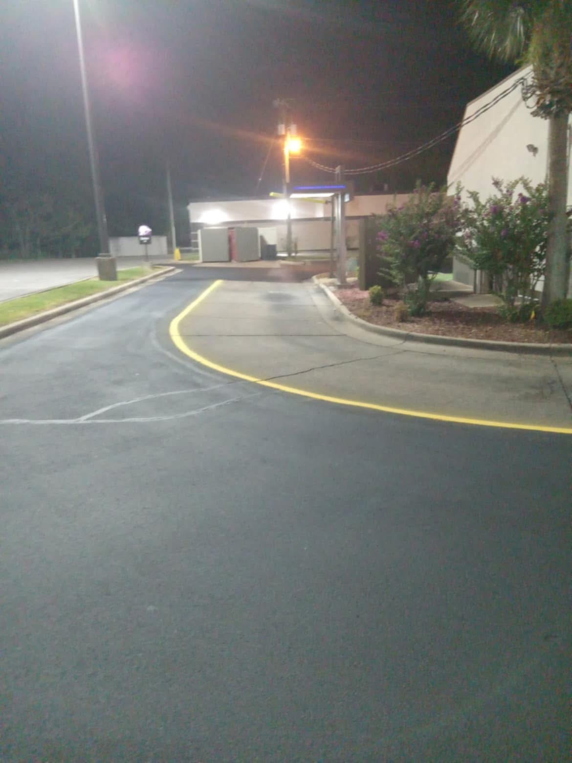 In order to bring this asphalt back to life for the this fast food restaurant we had to perform the following services crack filling, asphalt sealcoating and parking lot striping.