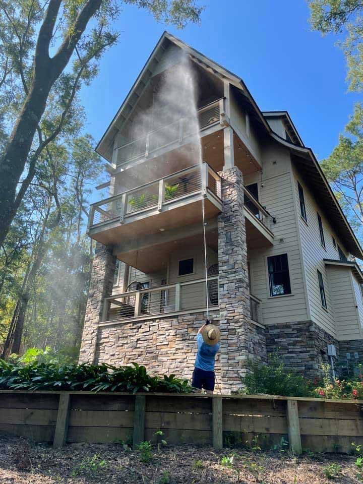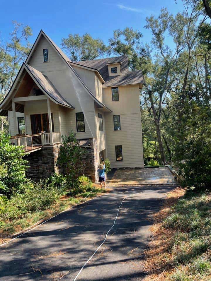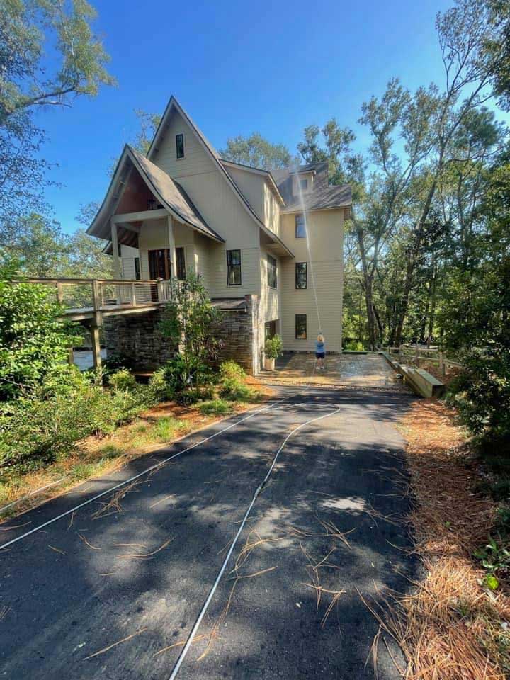 We pressure washed this beautiful home in Fairhope, AL. Our House Wash service includes soft washing techniques that allow us to get a great clean without risking any damage to your home! This service helps boosts curb appeal and gets rid of bacteria caused by organic growth or contaminants.