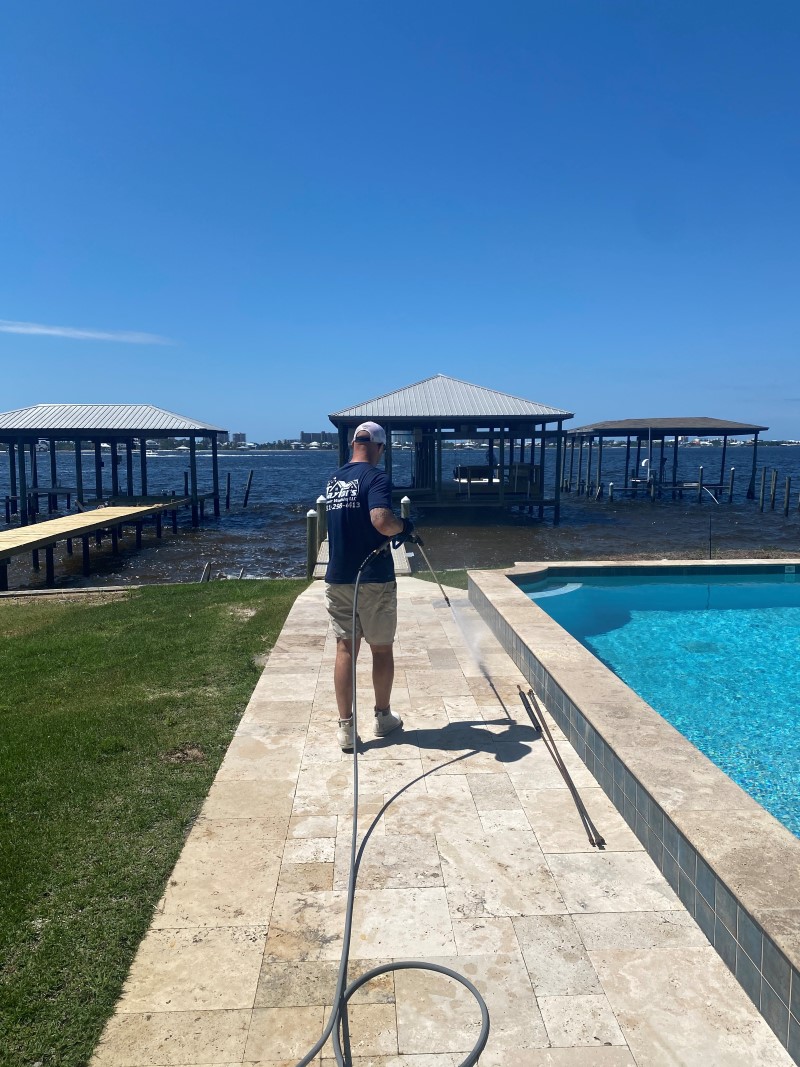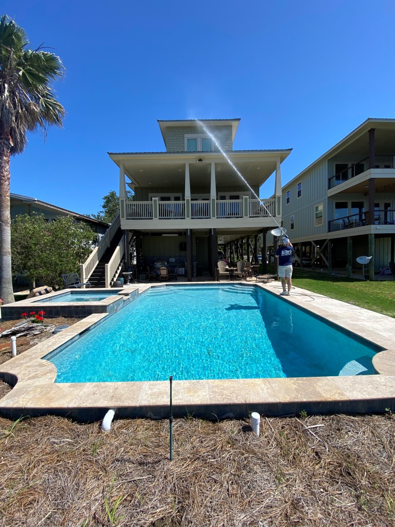 We soft washed this house on the water for one our repeat customers. Give our pressure washing professionals a call for all of your exterior cleaning needs including house washes, sidewalk cleaning, patio cleaning, and more!