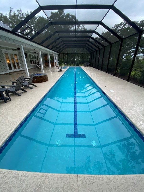 We surface clean around this pool with low pressure twice a year for these repeat customers cool deck is a very delicate surface and you got to use just the right amount of chemicals mixed with the right pressure.
